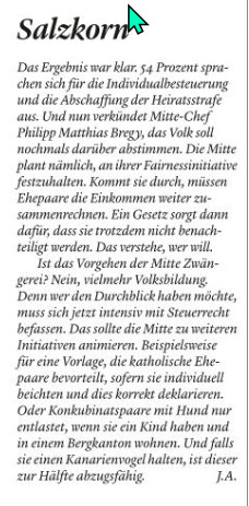 25.03. WAK S lehnt Mitte-Initiative zur Ehegattenbesteuerung nur knapp ab.